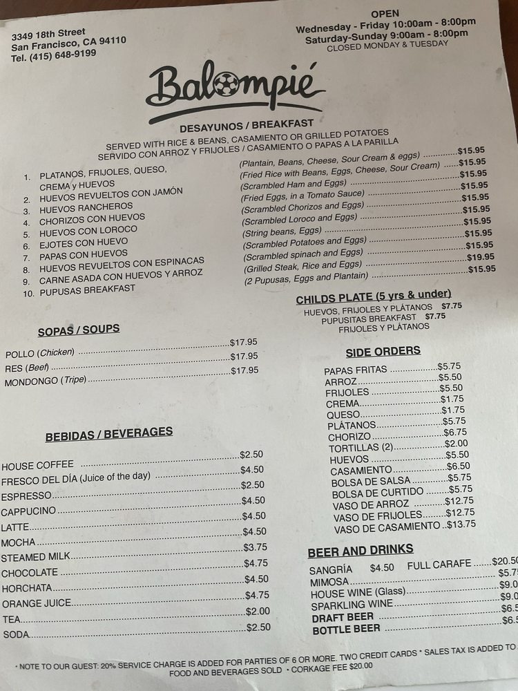 Welcome to Balompie Cafe, your go-to destination for authentic Salvadoran cuisine nestled in the heart of San Francisco. Known for its inviting atmosphere and exceptional service, this café stands out for its signature dish: pupusas, often hailed as the best in the city. The menu beckons with delightful offerings, including sopa de res and desayuno típico, ensuring a satisfying meal at any time of day.